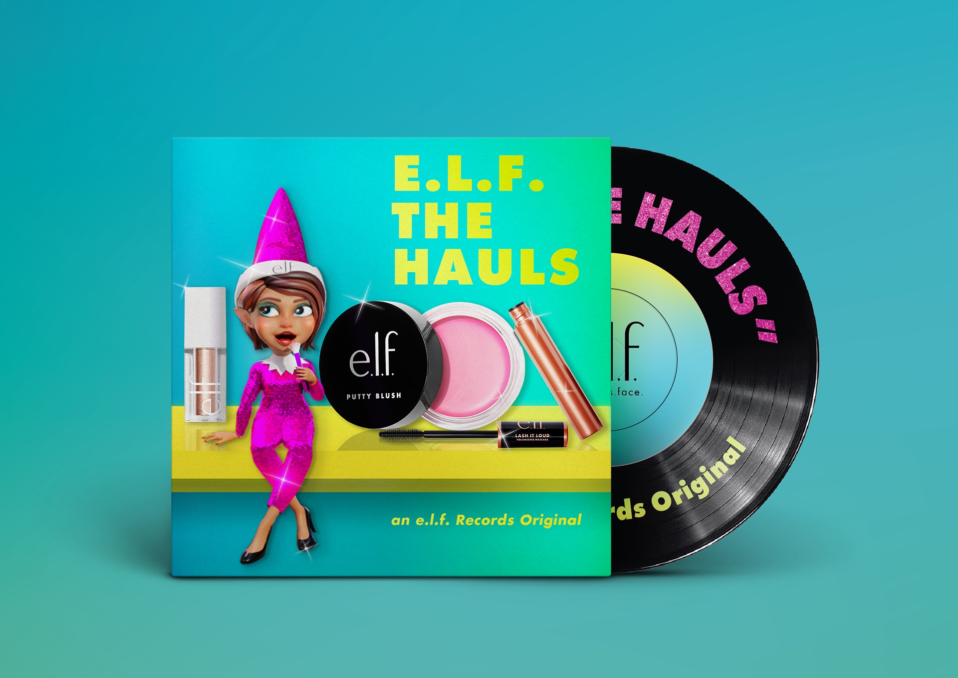 Not only is e.l.f. cosmetics famous in world of beauty, but also in music. E.l.f. became the first beauty brand to make a #1 music hit wit the song, 'Eyes. Lips. Face.' E.l.f. hit the charts again with their Holiday EP 'E.l.f. The Hauls' featuring classic holiday tunes remixed and covered by up-and-coming artists. I designed digital and printed materials to spread the word about the EP.