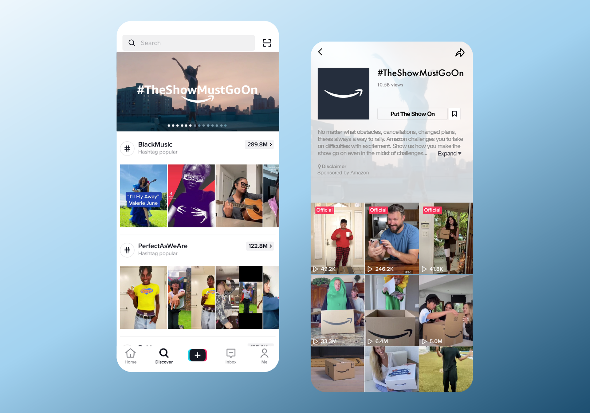 Tiktok leads in the industry for getting viewers take on a challenge. I helped Revlon and Amazon, respectively, with their #DoItBold and #TheShowMustGoOn hashtag challenges.
